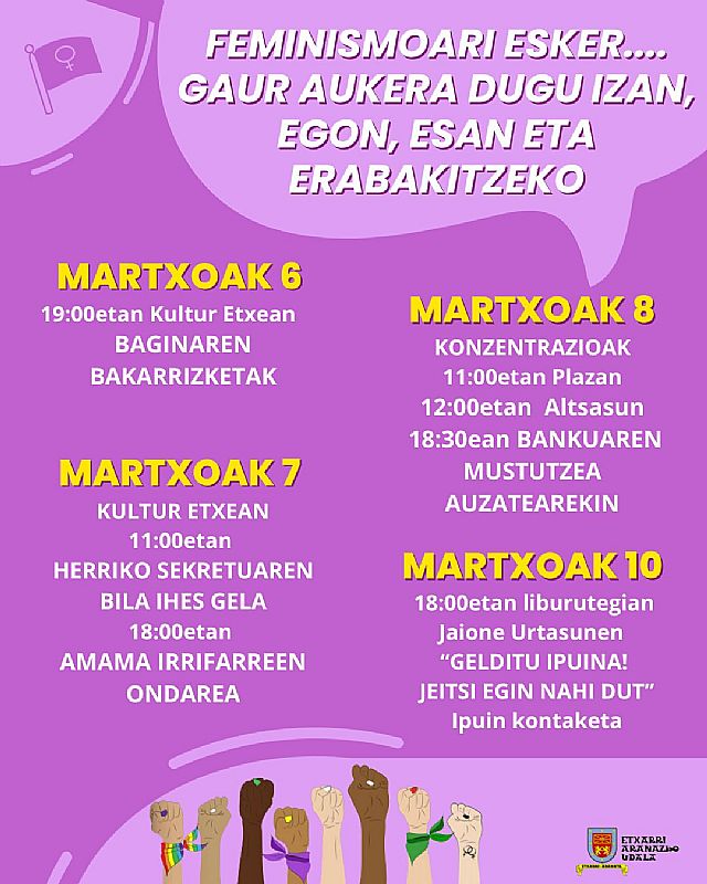 FEMINISMOARI ESKER... GAUR AUKERA DUGU IZAN, EGON, ESAN ETA ERABAKITZEKO